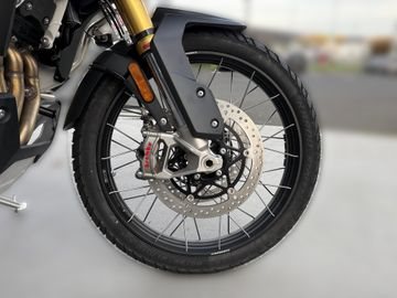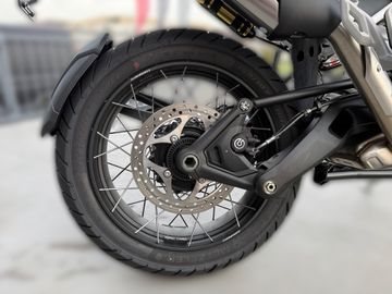 Hinterradbremse: Brembo Einzelkolben-Bremssattel, OC-ABS, 282 mm Bremsscheibe. Hinterer Hauptbremszylinder mit externem Bremsflüssigkeitsbehälter.