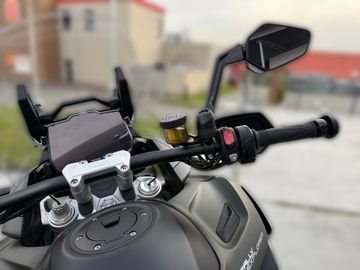 Vorderradbremse: Brembo M4.30 Stylema Monoblock-Bremssättel, OC-ABS, zwei schwimmend gelagerte 320 mm Bremsscheiben. Magura HC1 Radial-Hauptbremszylinder mit Bremshebel mit verstellbarer Hebelweite und getrenntem Bremsflüssigkeitsbehälter.